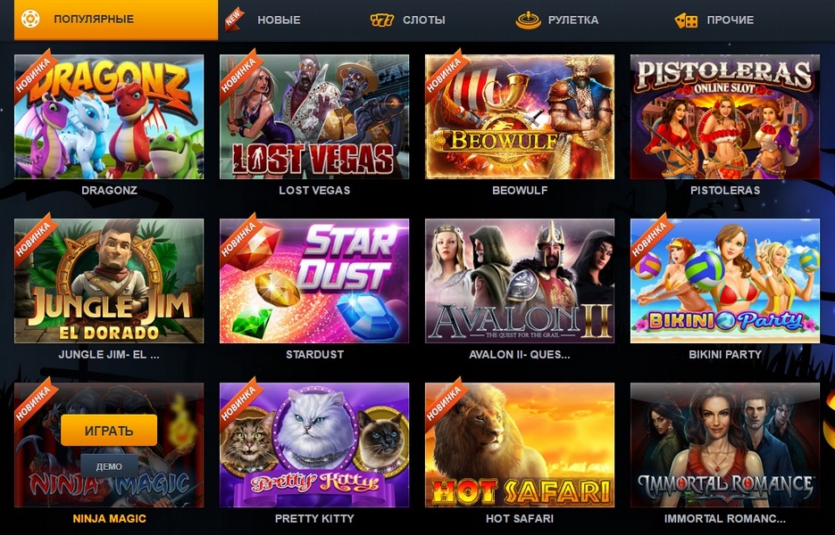 Кроме рулетки, пользователей смогут заинтересовать и настольные игры, различные слоты и игровые автоматы, которых тоже немалое количество. Одно из достоинств казино - каталог игр. Каждая игра оптимизирована и предоставляет высокие шансы на возврат капитала.